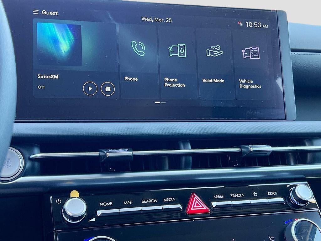 - Radio: AM/FM/HD Audio System -inc: 12.3" color touchscreen display, 6 speakers, SiriusXM satellite radio system (3-month trial subscription), wireless Apple CarPlay and Android Auto integration, controller OTA update capability, Blue Link connected car system and USB connectivity