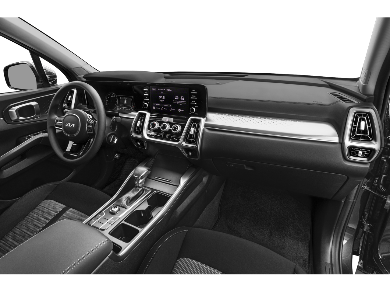Glacial White Pearl 2023 Kia Sorento LX FWD 8-Speed Automatic 2.5L I4 DGI DOHC 16V LEV3-ULEV70 191hp 4D Sport Utility, 2.5L I4 DGI DOHC 16V LEV3-ULEV70 191hp, 8-Speed Automatic, Glacial White Pearl, Black Cloth.