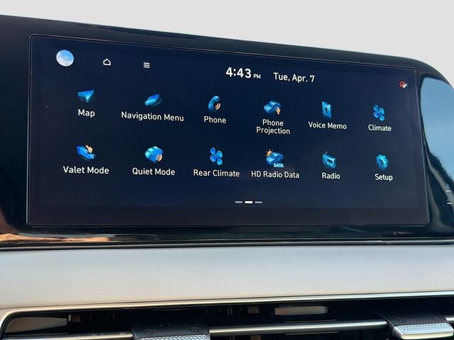 - Radio: AM/FM/MP3 Audio System -inc: 12.3" color touchscreen display, onboard navigation w/traffic flow including incident data via HD Radio (HERE), Over-the-Air (OTA) map updates, SiriusXM, USB, Android Auto and Apple CarPlay, dynamic voice recognition, rear seat quiet mode, Bluetooth® hands-free connectivity w/multiple device connection and Bluelink Connected Car System