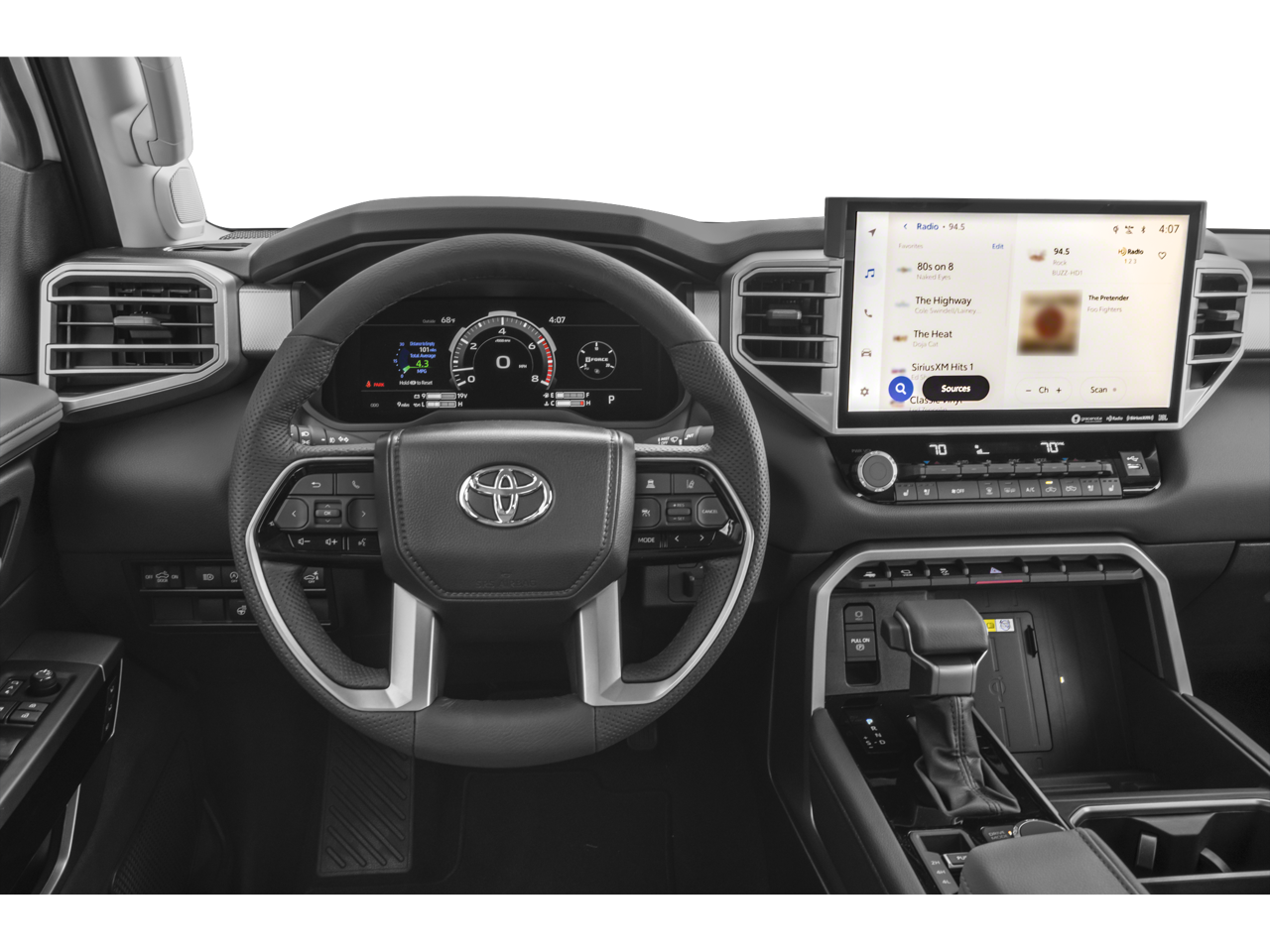 The Command Center: A massive 14-inch Toyota Audio Multimedia touchscreen sits at the heart of the dash, featuring wireless Apple CarPlay® and Android Auto™.